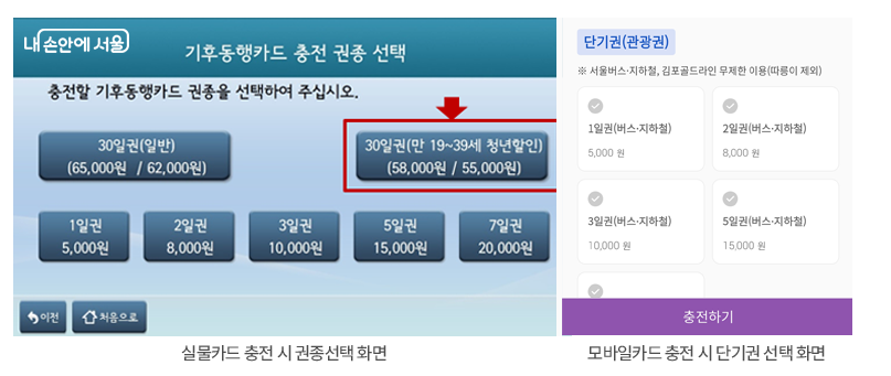- 30일 단기권종을 '단기권'으로 세분화해 효율적인 이용을 돕고 현재 탑승한 지하철, 버스 등 외에도 리버버스, 자율주행버스까지도 사용범위를 넓혀 나간다.