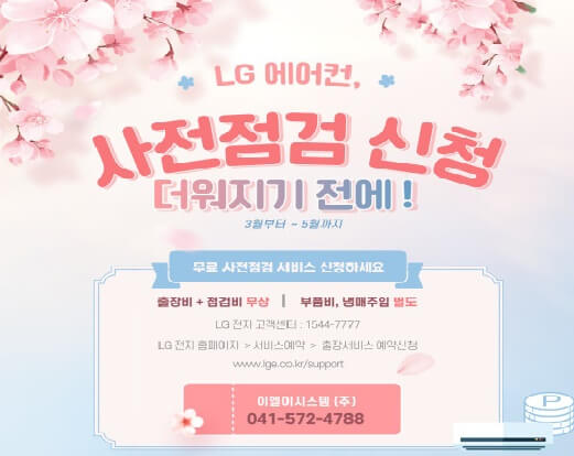 본격적인 여름이 시작되기 전 꼭 에어컨 무료 사전점검 서비스를 신청해서 받으시기 바랍니다.